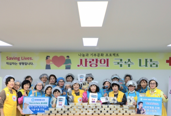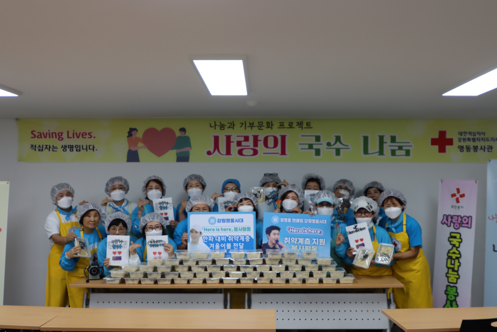 임영웅 팬클럽 강원영웅시대는 10월 28일 대한적십자사 영동적십자봉사관에서 취약계층을 위한 국수 나눔 봉사 활동을 했다.
