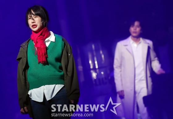 연예방송박새힘 '뜨거운 연기'[★포토]발행 : 2024.10.29 ・ 15:26김창현 기자뮤지컬 배우 박새힘이 29일 오후 서울 구로구 디큐브 링크아트센터에서 진행된 뮤지컬 '광화문 연가' 프레스콜에 참석해 열연을 하고 있다.'광화문연가'는 생의 마지막 순간을 앞둔 '명우'와 그를 추억 여행으로 이끄는 인연술사 '월하'가 삶의 소중한 순간들을 들여다보는 이야기를 담은 작품이다. 내년 1월 5일까지 공연된다. 2024.10.29<저작권자 © 스타뉴스, 무단전재 및 재배포 금지>광화문연가뮤지컬박새서울구로구큐브추천 기사김창현 기자기자홈좋아요 연예-방송의 인기 급상승 뉴스연예-방송의 최신 뉴스