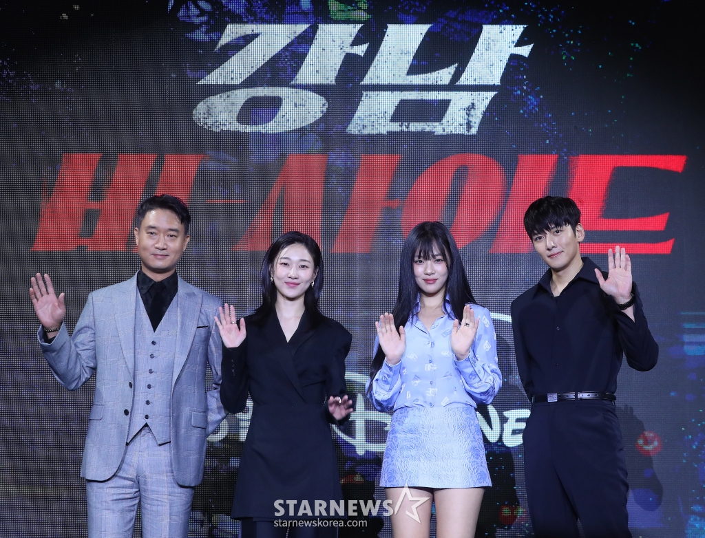 배우 조우진, 하윤경, 김형서, 지창욱, 박누리 감독 30일 오전 서울 종로구 포시즌스 호텔 서울에서 진행된 디즈니+ 오리지널 '강남 비-사이드' 제작발표회에 참석해 포즈를 취하고 있다.