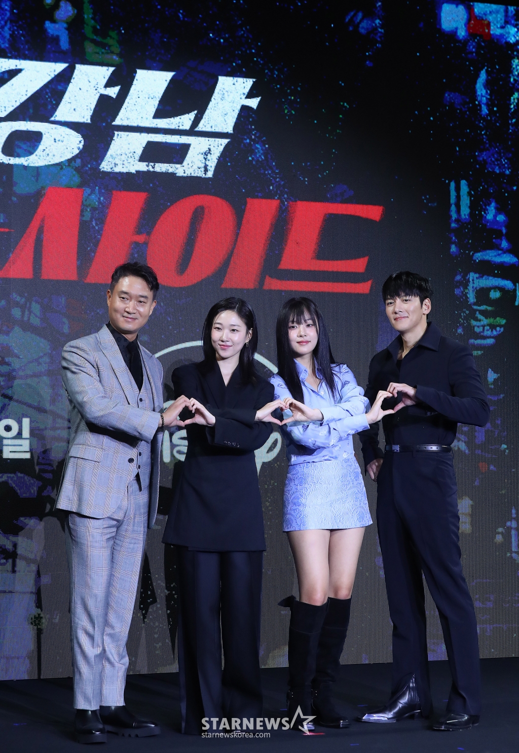 '강남 비-사이드'는 강남에서 사라진 클럽 에이스 '재희'(김형서 분)를 찾는 형사와 검사, 그리고 의문의 브로커, 강남 이면에 숨은 사건을 쫓기 위해 서로 다른 이유로 얽힌 세 사람의 추격 범죄 드라마다. 11월 6일 공개. 2024.10.30