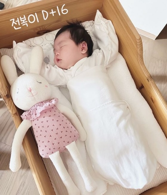 코미디언 박수홍의 아내 김다예가 생후 16일 된 딸의 근황을 전했다.