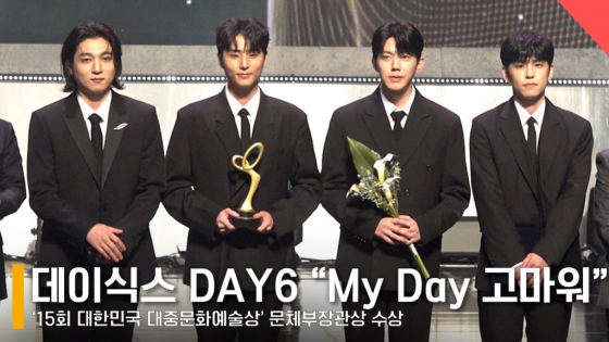 연예방송'올해 최고 밴드' 데이식스, 문체부장관 수상 "My Day 너희가 해냈다!" [영상]발행 : 2024.10.31 ・ 19:20전시윤 기자밴드 데이식스 /사진=전시윤 기자31일 오후 서울 중구 국립극장 해오름극장에서 '15회 대한민국 대중문화예술상' 시상식이 열렸다.이날 밴드 데이식스가 문체부장관을 수상, 수상 소감을 전하고 있다.<저작권자 © 스타뉴스, 무단전재 및 재배포 금지>데이식스DAY6MyDay수상밴드추천 기사전시윤 기자기자홈좋아요 연예-방송의 인기 급상승 뉴스연예-방송의 최신 뉴스