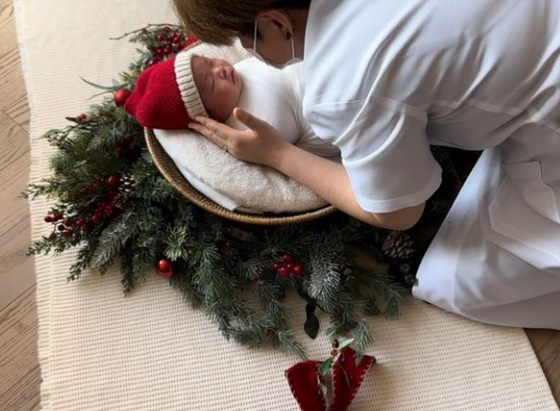 공개된 사진 속에는 신생아 촬영 중인 전복이의 모습이 담겼다. 사진사가 전복이의 포즈를 잡아주고 있다.