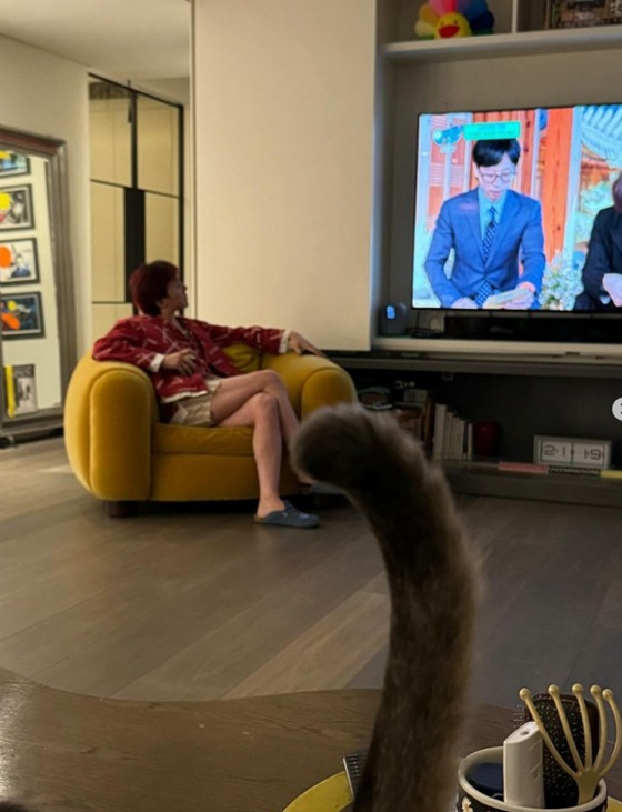 사진 속에는 최근 자신이 출연한 tvN 예능 프로그램 '유 퀴즈 온 더 블럭'을 시청 중인 지드래곤의 모습이 담겼다.