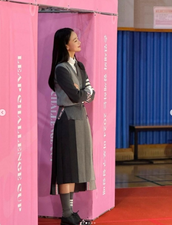 그레이색 단정한 상하의를 착용한 손연재는 1994년생, 29세임에도 학생 같아 보이는 최고 동안 미모를 자랑했다. 또 다른 사진에서 그는 블랙스완을 연상시키는 옷을 입고 특유의 '소녀미'를 뽐냈다.