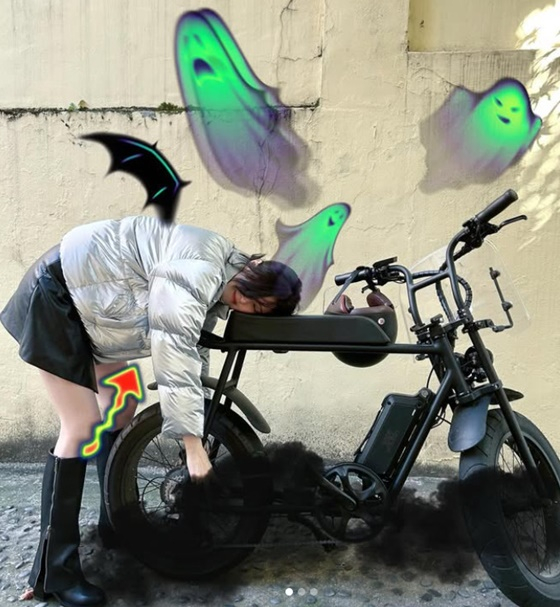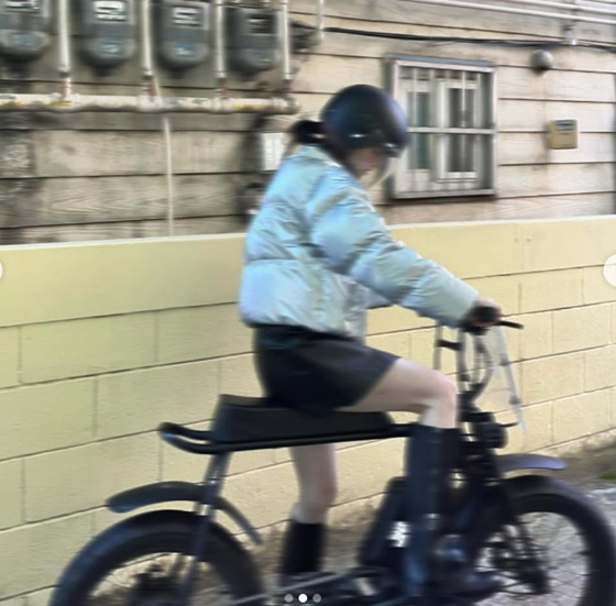 여기엔 바이크에 몸을 기댄 채 축 늘어져 있는 한소희의 모습이 담겼다. 또 다른 사진에는 한소희가 헬멧을 쓰고 직접 바이크를 운전하려는 순간이 포착됐다. 또한 한소희는 중화요리점에서 시킨 배달 음식을 인증, 화기애애한 현장 분위기를 엿보게 했다.