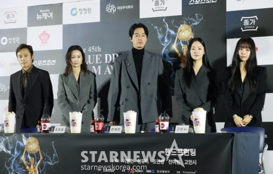 배우 이병헌, 정유미, 조인성, 전여빈, 고민시가 6일 서울 오후 서울 여의도 CGV에서 진행된 제45회 청룡영화상 핸드프린팅 행사에 참석해 포즈를 취하고 있다.