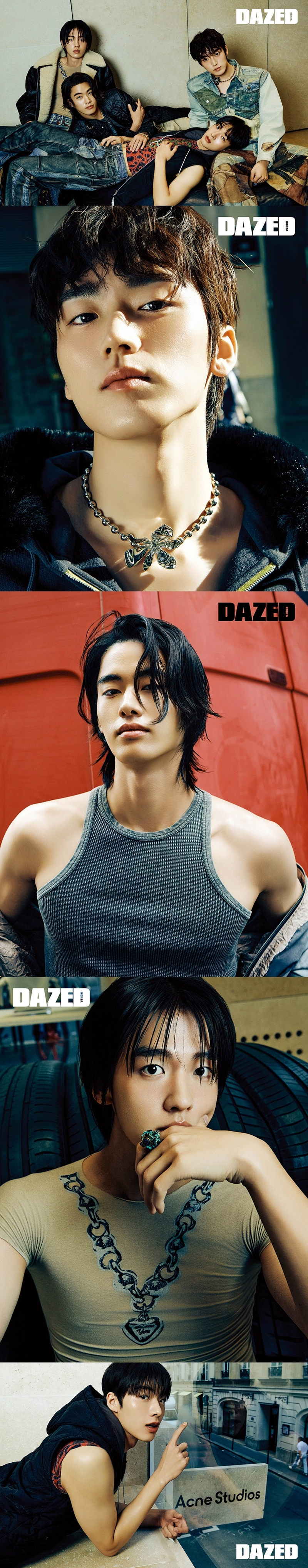 이처럼 배우 그룹으로서 새로운 활동 방향을 선보이며 업계 관심을 한 몸에 얻고 있는 신인 배우 그룹 뉴네임의 데이즈드 11월 호 화보가 7일 공개됐다. 아크네 스튜디오 파리 컬렉션 참석과 함께 진행된 화보인 만큼 프랑스 현지 감성을 패셔너블하게 풀어냄은 물론 압도적 비주얼로 시선을 집중시켰다. 멤버 개인의 개성은 물론 팀으로 어우러진 극강의 비주얼까지 신선하고 화려하게 채워낸 화보 컷의 높은 완성도 또한 '뉴네임'을 더욱 주목하게 한다.