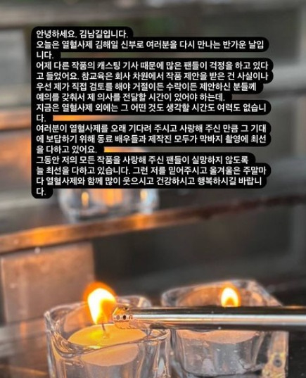 김남길은 8일 새벽 자신의 인스타그램 스토리에 장문의 입장문을 게재했다.