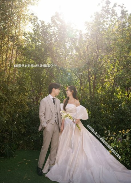 간미연은 9일 자신의 개인계정에 웨딩화보 사진을 게재했다.