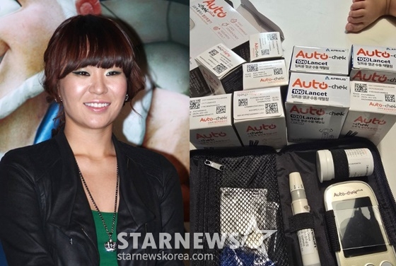 함께 공개된 사진에는 임신성 당뇨 관리에 필요한 채혈침과 혈당 측정기가 담겼다.