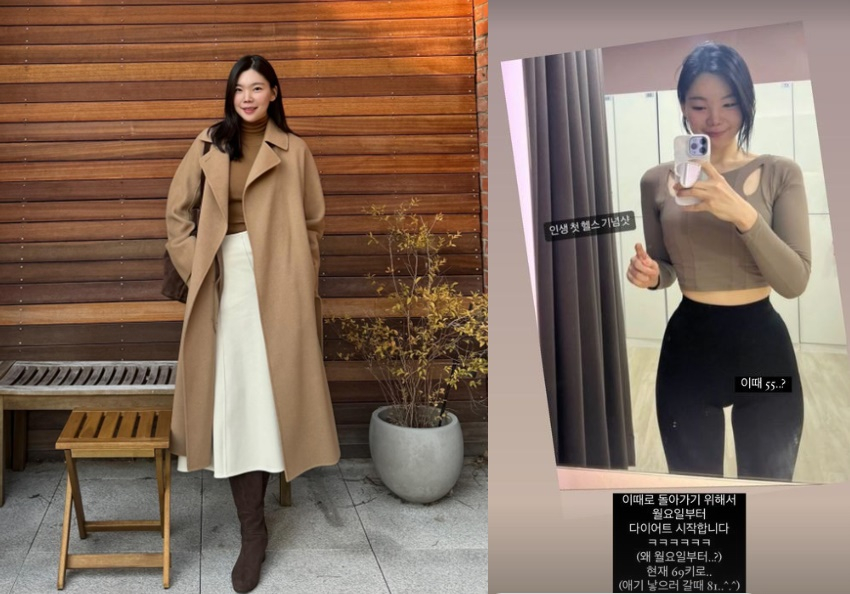 이다은은 사진과 함께 "이때로 돌아가기 위해서 월요일부터 다이어트 시작합니다"라며 "현재 69키로"라고 적었다.