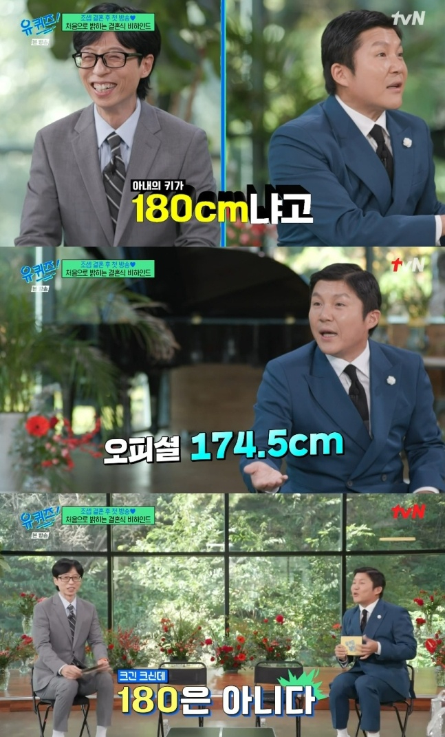 조세호 아내의 키에 대한 궁금증도 있었다. 조세호는 결혼식이 끝나갈 무렵 아내와 키스를 하는 장면에서 까치발을 높이 들어 올려 '아내의 키가 180cm 아닌가'라는 소문이 돌았다. 이에 조세호는 지난 6일 방송된 tvN 예능 '유 퀴즈 온 더 블럭'에서 "정확히 오피셜하게 말씀드리고 싶다. 174.5cm다. 나보다 크긴 한데 180cm는 아니다"라고 밝혔다.
