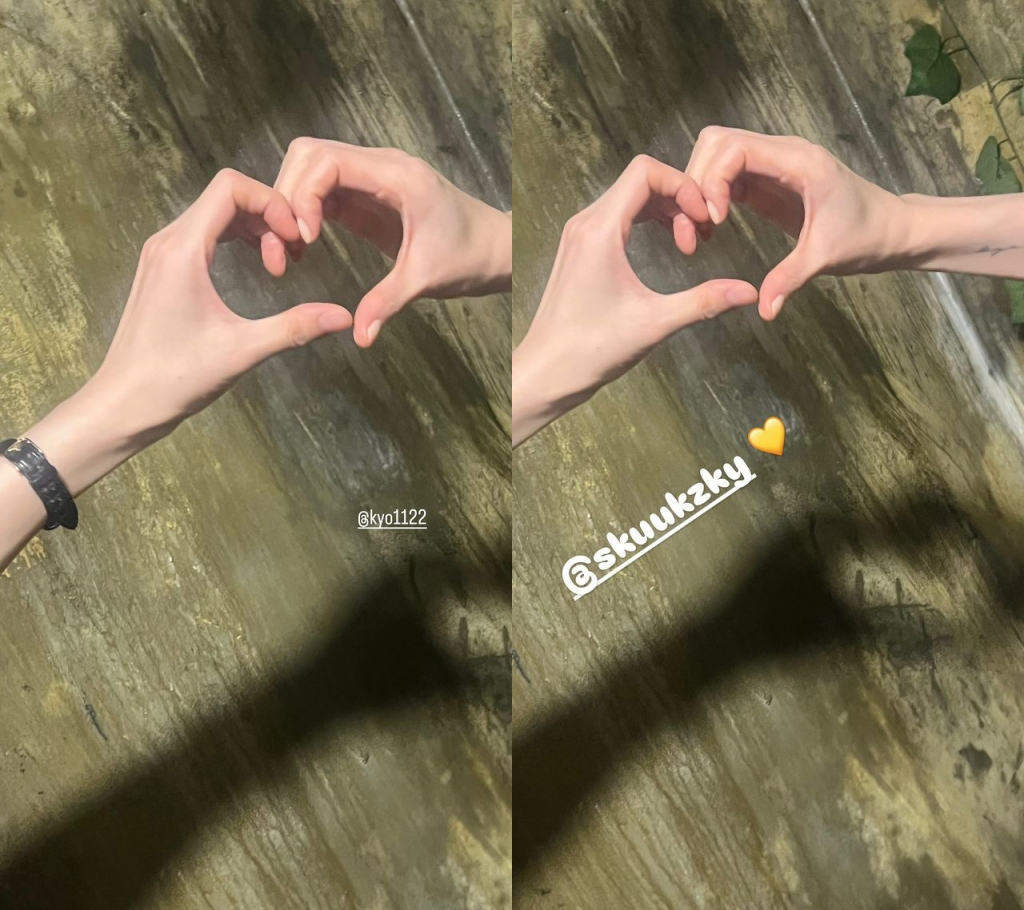 송혜교와 수지는 12일 각자 인스타그램에 손하트를 만든 사진을 공개하며 서로의 계정을 태그했다. 두 사람은 만남을 가진 뒤 같은 사진을 올리며 서로를 향한 애정을 표현했다.