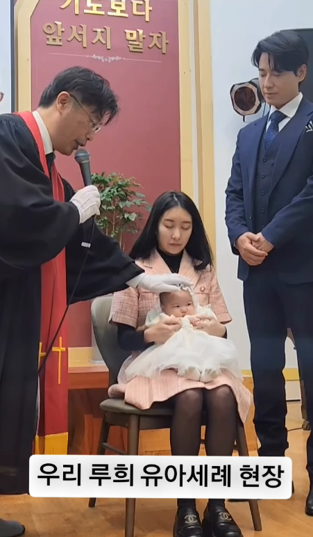 가수 이지훈과 일본인 아내 아야네가 딸 루희의 유아세례 모습을 공개했다.