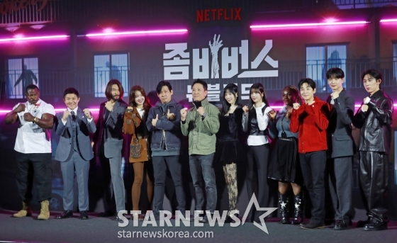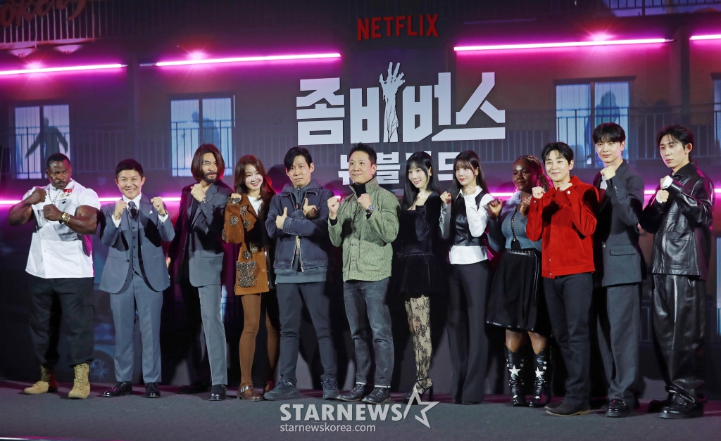 연예방송'좀비버스 뉴블러드' 화이팅![★포토]발행 : 2024.11.14 ・ 14:39이동훈 기자안드레 러시, 조세호, 노홍철, 이시영, 박진경PD, 문상돈PD, 태연, 박은비, 파트리샤, 딘딘, 육성재, 코드 쿤스트가 14일 오후 서울 CGV용산아이파크몰에서 진행된 넷플릭스 예능 '좀비버스 : 뉴 블러드' 제작발표회에 참석해 포즈를 취하고 있다. /2024.11.14<저작권자 © 스타뉴스, 무단전재 및 재배포 금지>좀비버스뉴블러드블러드화이팅버스안드레추천 기사이동훈 기자기자홈좋아요 연예-방송의 인기 급상승 뉴스연예-방송의 최신 뉴스
