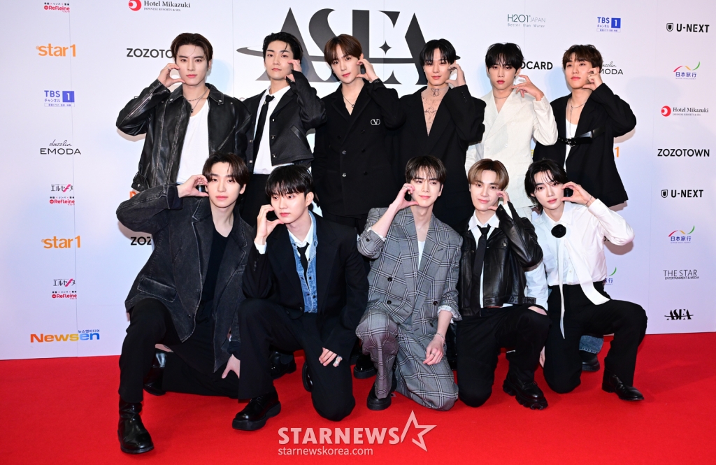 그룹 더보이즈가 10일 일본 요코하마 K-아레나에서 진행된 제1회 '아시아 스타 엔터테이너 어워즈 2024' 레드카펫행사에 참석해 포즈를 취하고 있다. /사진제공=ASEA조직위원회 2024.04.10 /사진=이동훈