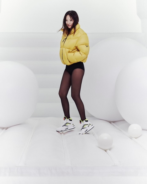 사진 속 이효리는 노란색 숏패딩에 검은색 핫팬츠, 스타킹을 매치한 모습. 연예계 대표 패셔니스타인 만큼 과감한 노출 패션도 완벽하게 소화하면서 반전 매력을 자랑했다.