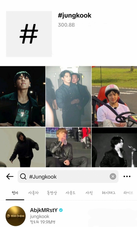 정국은 최근 글로벌 쇼트 비디오 플랫폼 '틱톡'에서 자신의 고유 명사 개인 해시태그 '#jungkook'으로 조회수 3000억을 넘어섰다.