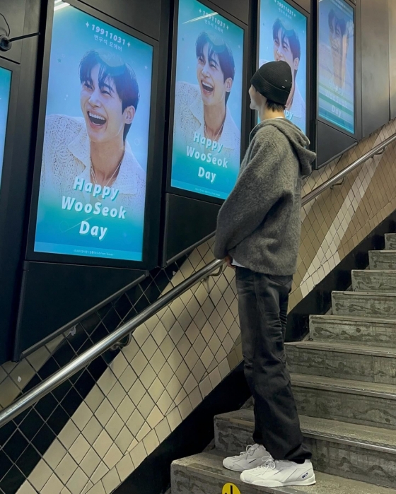 사진 속 변우석은 지난달 31일 생일을 맞아 팬들이 준비한 이벤트 장소들을 모두 방문하며 인증샷을 찍고 있는 모습. 그는 코엑스부터 건대입구, 지하철역 등 자신의 생일을 축하하는 전광판들을 흐뭇하게 바라보며 해맑게 웃고 있다.
