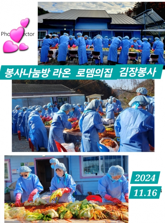 '라온'은 "작년보다 배 가까이 늘어난 양인 2500포기의 배추가 준비되었다고 해서 이른 새벽부터 긴장된 마음으로 서둘러 양평까지 달려가서 엄청난 물량의 배추를 보고 놀랐지만, 로뎀의집 천사들의 일 년 양식을 준비해 준다는 뿌듯함으로 힘든 줄도 모르게 즐거운 마음으로 임했다"고 전했다.
