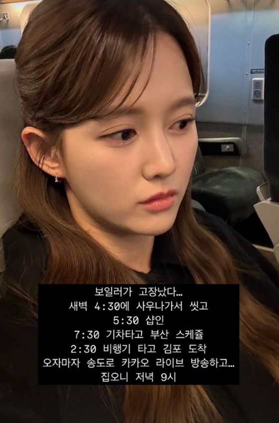 또한 그는 오전 7시 30분 기차를 타고 부산 스케줄을 소화했고, 오후 2시 30분 비행기를 타고 김포에 도착했다고 밝혔다. 이어 송도에서 라이브 방송 일정도 소화한 후 오후 9시에 귀가했다고 전했다.