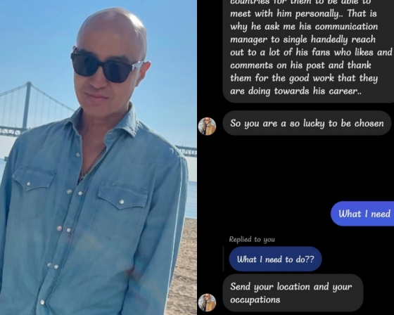 그가 공개한 사진에는 홍석천을 사칭한 SNS 계정이 여러 사람들에게 보낸 다이렉트 메시지(DM)가 담겼다.