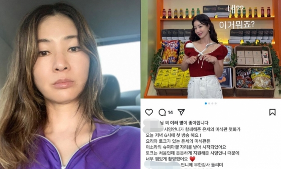 한편 이소라는 지난해 11월 웹예능 '슈퍼마켙 소라'를 론칭하고 첫 게스트로 옛 연인 신동엽을 초대해 큰 화제를 모았다. 이후 NS윤지, 산다라박, 추성훈, 소녀시대 유리, 장성규, 천우희 등 다양한 게스트들과 만났다. 그러나 지난 6월 이후 새로운 영상은 공개되지 않고 있고, 기은세는 3주 전부터 해당 채널에서 '은세의 미식관'을 진행 중이다.