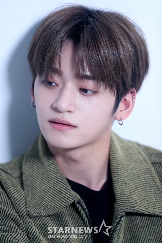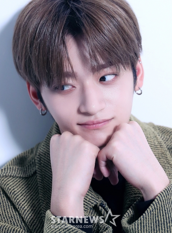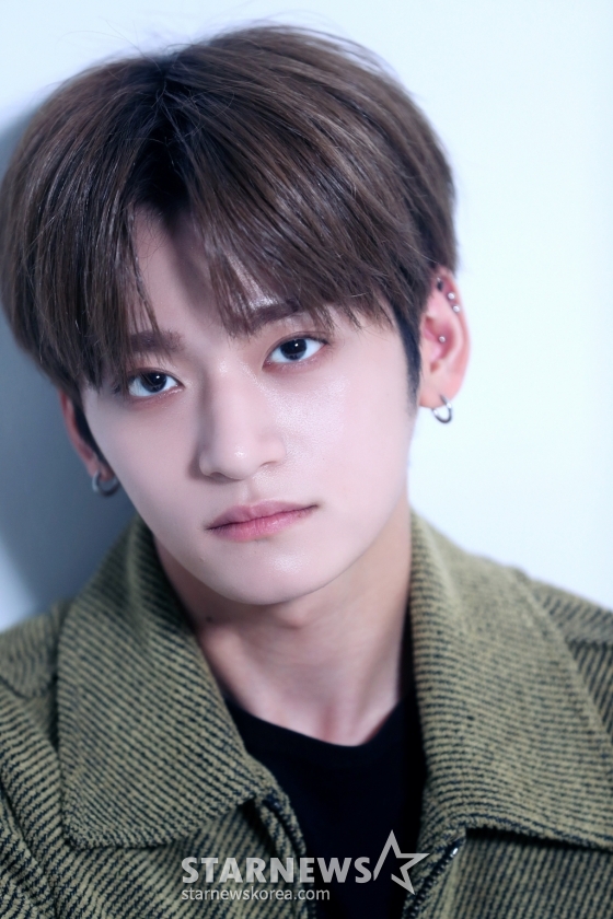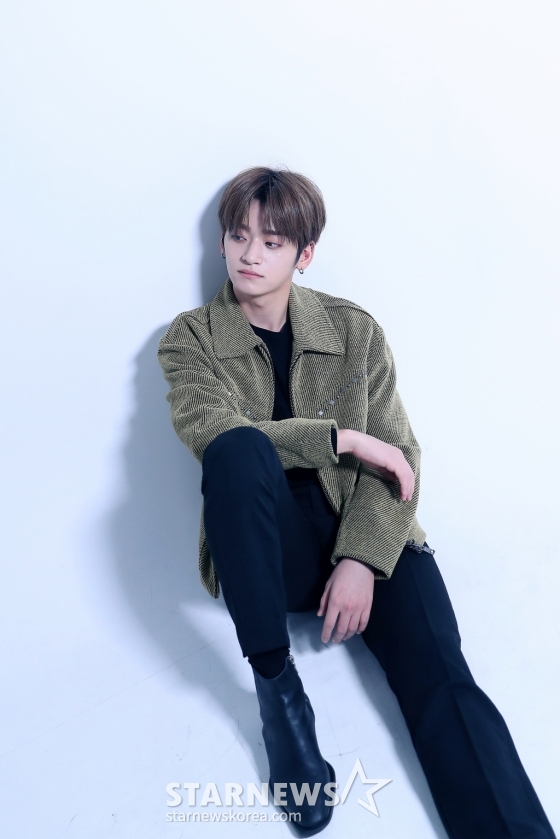 그룹 휘브(WHIB) 재하가 데뷔 1주년을 맞아 서울 종로구 스타뉴스 사옥에서 진행된 인터뷰에 앞서 포즈를 취하고 있다.