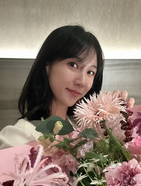 이수경은 누군가에게 받은 꽃다발을 들고 행복한 표정을 짓고 있다. 그는 "♥"로 설레는 감정을 표현하기도 했다.