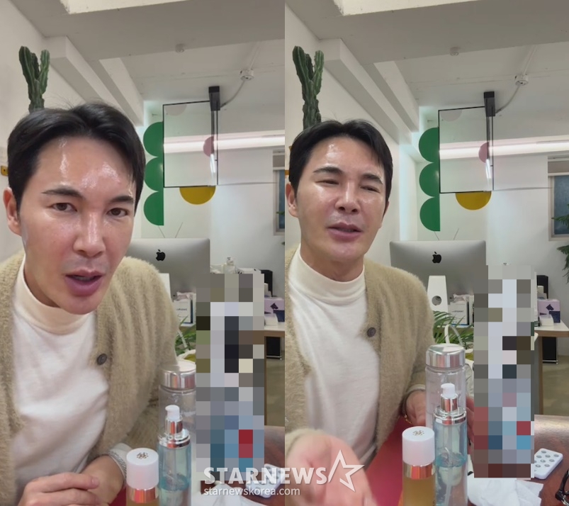 김우리는 20일 자신의 인스타그램 라이브를 통해 산양유 공구 방송을 진행하고 있다.