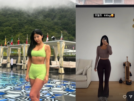제이제이는 20일 "오늘도 64kg"이라는 문구와 함께 운동복 셀카를 게재했다.