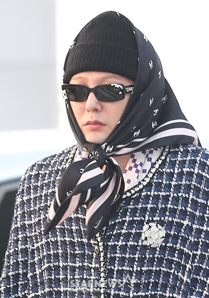 이날 인천국제공항에 모습을 드러낸 지드래곤은 스카프 패션으로 눈길을 끌었다. 비니에 스카프를 두른 그는 남다른 패션 감각을 뽐냈다.