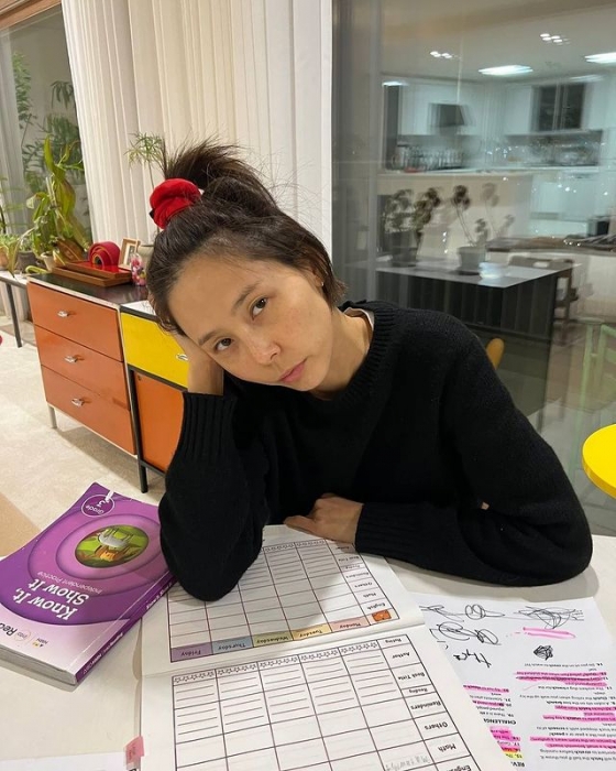공개된 사진 속에는 아들의 숙제인 듯한 종이를 펼쳐두고 카메라를 응시하고 있는 김나영의 모습이 담겼다. 그는 다소 지친 듯한 표정으로 눈길을 끌었다. 이에 네티즌들은 공감하는 댓글을 남겼다.