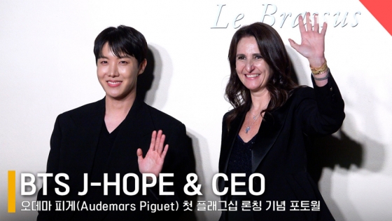 이날 방탄소년단(BTS) 멤버 제이홉(J-HOPE)과 오데마 피게 CEO 일라리아 레스타(Ilaria Resta)가 참석해 포즈를 취하고 있다.