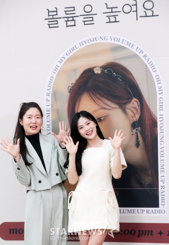 오귀나 PD, 걸그룹 오마이걸 효정이 25일 오전 서울 여의도 KBS 신관 국제회의장에서 열린 'KBS 쿨FM' 개편 기자간담회에 참석해 포토타임을 갖고 있다. 2024.11.25