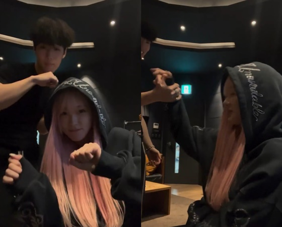 영상 속에는 김하온의 신곡 'Skrr'에 맞춰 귀여운 안무를 추고 있는 김하온, 지젤의 모습이 담겼다. 두 사람은 영상 말미 하이파이브를 하며 다정한 사이임을 증명하기도 했다.