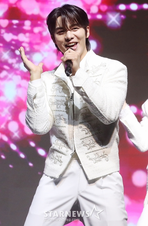 그룹 마이트로 한태이가 26일 오후 서울 강남구 슈피겐홀에서 진행된 TV조선 예능 '트롯돌 입덕기: 진심누나' 기자간담회에 참석해 멋진 무대를 선보이고 있다..