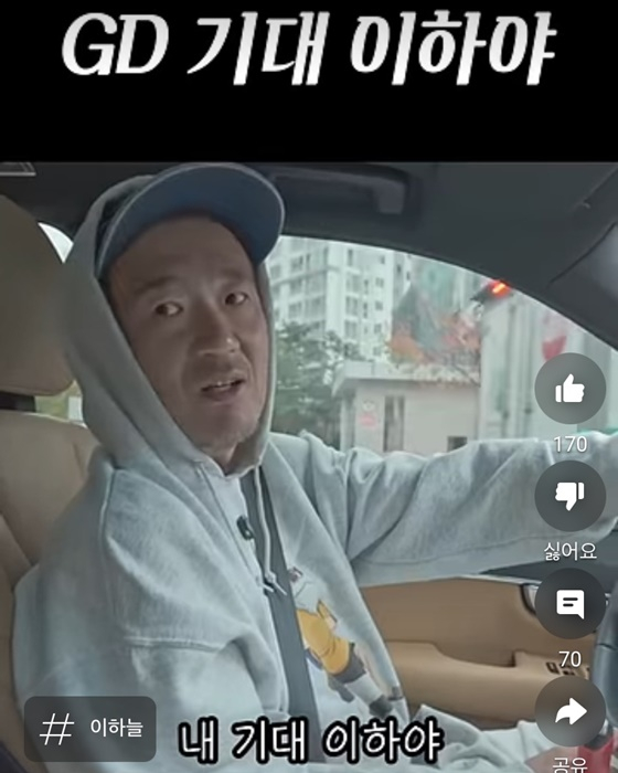 다만 이 멘트는 본 영상에 담긴 것이 아닌, '지디 기대 이하야'라는 자극적인 타이틀로 쇼츠 영상으로 따로 제작돼 올라갔다. 결국 채널 유입을 위한 '어그로' 끌기, 화제성을 노린 꼴에 지나지 않으며 이하늘에 대한 비난이 이어지고 있다.