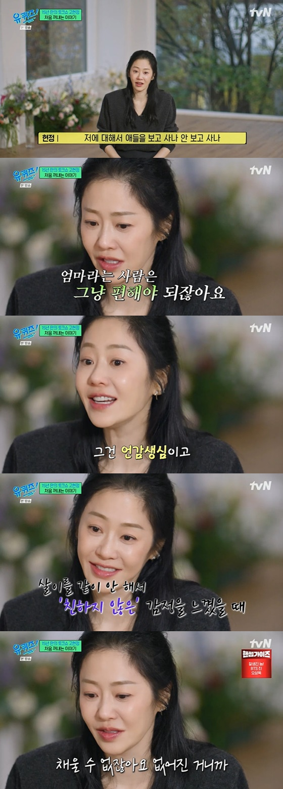 특히 고현정은 자녀들에 대해 최초로 언급, 이목을 집중시켰다. 그는 "애들을 보고 사나, 안 보고 사나 궁금해하시는 분들이 많더라. 처음 얘기할 수 있는 건 엄마라는 사람은 그냥 편해야 되잖아요. 근데 그건 '언감생심(焉敢生心)'이고. '살이'를 같이 안 해서 쑥스럽고 친하지 않은 그 감정을 느꼈을 때, 친하지 않은 것이 이렇게 슬픈 건지 몰랐다. 그 감정이 들면서 너무 슬프더라. 이건 채울 수 없잖아요. 없어진 거니까, 많이 속상했었다"라고 자녀들과의 만남을 간접적으로 밝혔다.