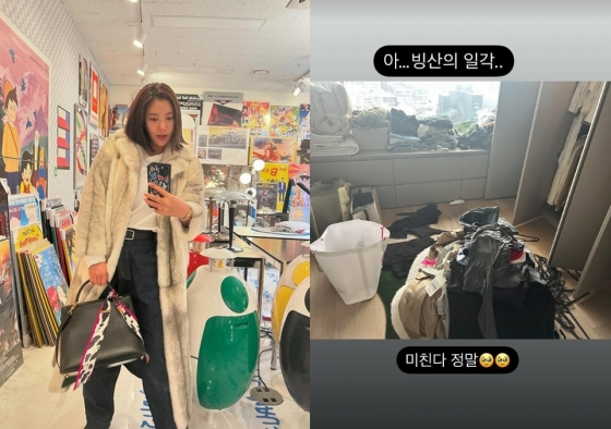 공개된 사진 속엔 이규혁, 손담비 부부 집 바닥에 옷들이 많이 쌓여있다. 손담비는 이를 바라보며 참담한 심경을 드러냈다.