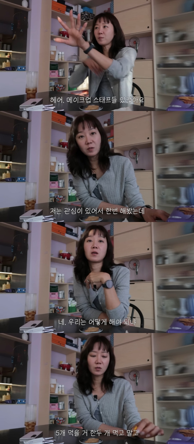 이어 공효진은 좋아하는 과자를 소개했고, 유튜브 PD는 "저한테는 저탄고지(저탄수화물 고지방 식이요법) 하라고 해놓고"라고 말했다. 이에 공효진은 "내가 저탄고지로 할 얘기가 많다"고 운을 뗐다.