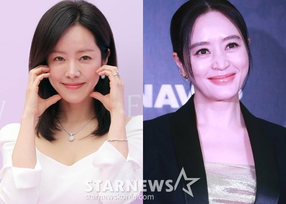 배우 한지민이 김혜수에게 꽃다발을 받았다.
