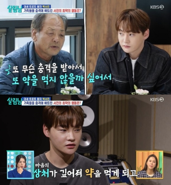 이에 박서진 아버지는 "댓글에서 얄궂은 소리를 하면 충격받아 약을 먹지 않을까. 그때 내가 데리고 병원에 갔다. 형님 둘을 보내고 얘마저 보내나 싶어서. 항상 마음이 불안하다"고 말했다.