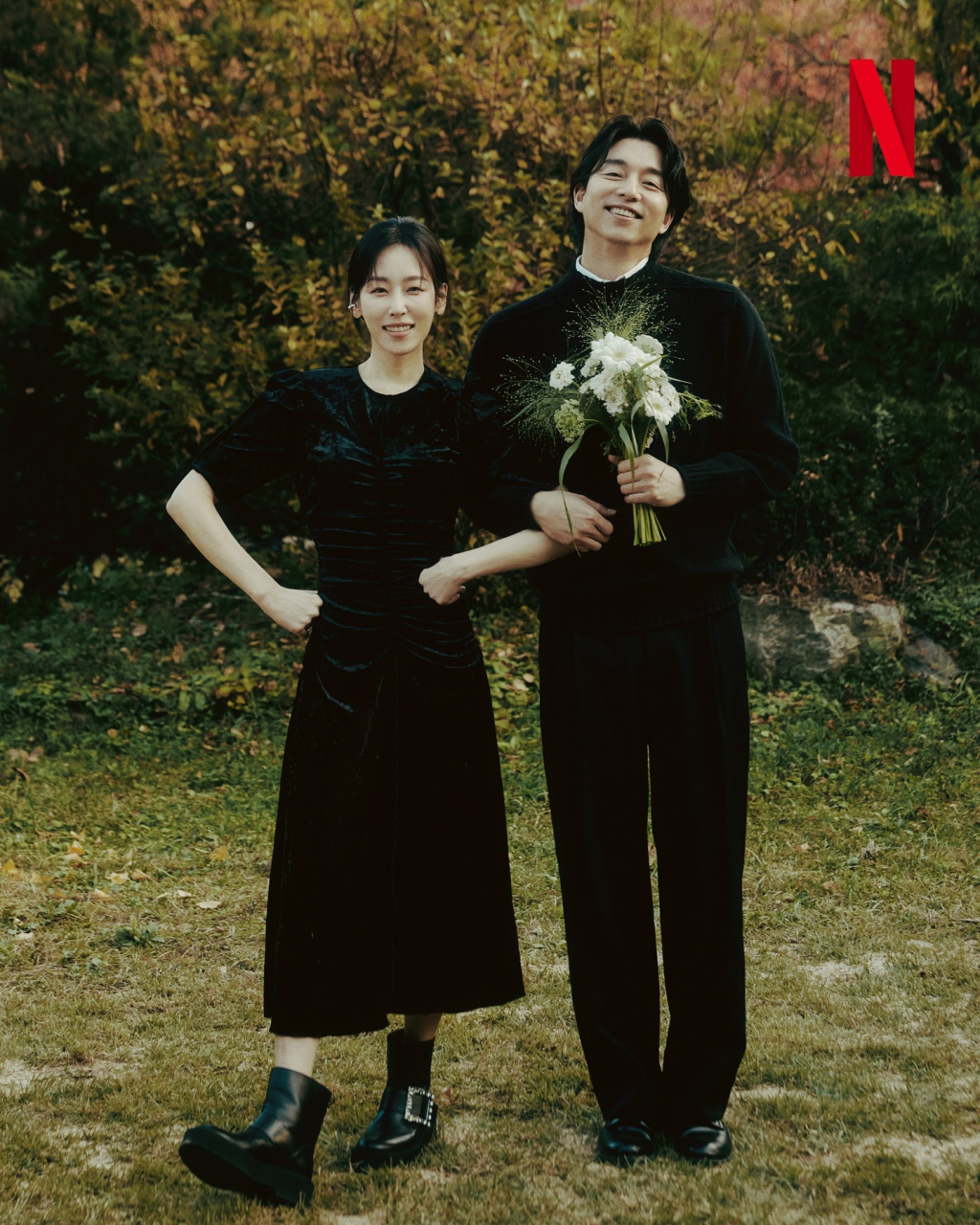 사진 속 공유, 서현진은 서로 햄버거를 나눠 먹으며 행복한 일상을 보내고 있는 모습. 두 사람은 올블랙 착장에 하얀색 부케를 들고 팔짱을 낀 채 환하게 웃고 있다. 한 편의 웨딩 화보를 연상케 하는 공유, 서현진의 사랑스러운 호흡이 눈길을 끈다.