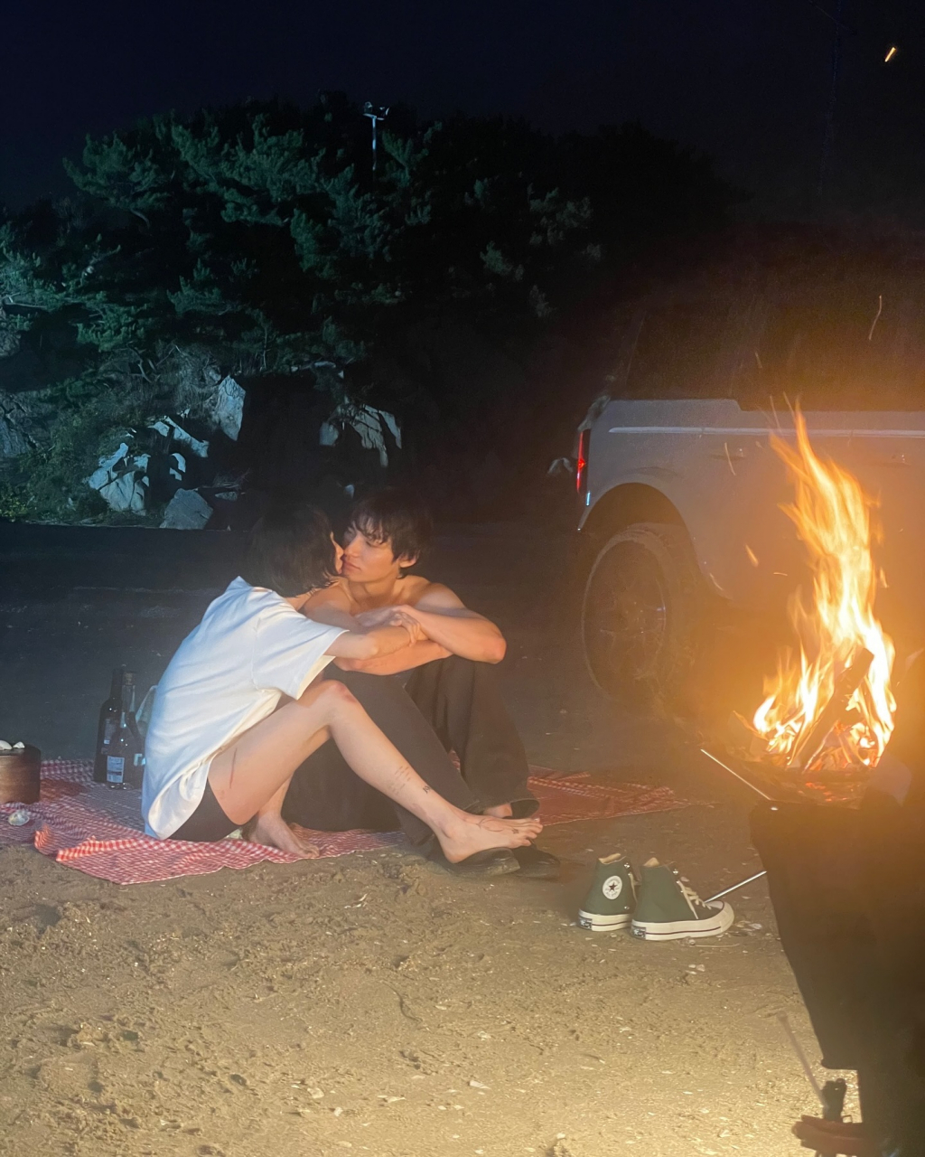 사진 속 채종석은 상의를 탈의한 채 나나와 연인 케미를 뽐내고 있는 모습. 두 사람은 바닷가에서 수영을 즐기다가 뽀뽀를 하는가 하면, 모닥불 앞에서 서로의 어깨에 기대거나 키스를 나누며 달콤한 호흡을 자랑했다.