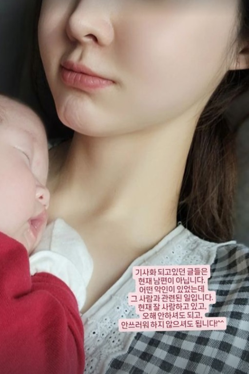현재는 해당 폭로글을 지운 아름은 막내 딸을 안고 있는 셀카 사진을 게재하며 "기사화 되고 있던 글들은 현재 남편이 아닙니다. 어떤 악인이 있었는데 그 사람과 관련된 일입니다. 현재 잘 사랑하고 있고 오해안하셔도 되고 안쓰러워하지 않으셔도 됩니다"라고 해명글을 올렸다.