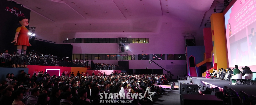 연예방송팬들 만난 '오징어 게임2'[★포토]발행 : 2024.12.09 ・ 21:03김창현 기자9일 오후 서울 중구 동대문디자인플라자에서 넷플릭스 시리즈 '오징어 게임 시즌2' 팬 쇼케이스가 진행되고 있다.'오징어 게임 시즌2'는 복수를 다짐하고 다시 돌아와 게임에 참가하는 '기훈'(이정재)과 그를 맞이하는 '프론트맨'(이병헌)의 치열한 대결, 그리고 다시 시작되는 진짜 게임을 담은 이야기다. 오는 26일 공개. 2024.12.9<저작권자 © 스타뉴스, 무단전재 및 재배포 금지>넷플릭스오징어게임핑크카펫오징어게임2이정재이병헌추천 기사김창현 기자기자홈좋아요 연예-방송의 인기 급상승 뉴스연예-방송의 최신 뉴스