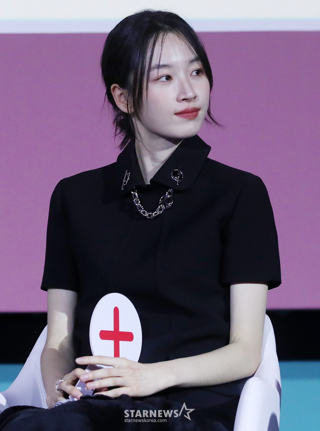 배우 원지안이 9일 오후 서울 중구 동대문디자인플라자에서 진행된 넷플릭스 시리즈 '오징어 게임 시즌2' 팬쇼케이스에서 즐거운 시간을 보내고 있다.