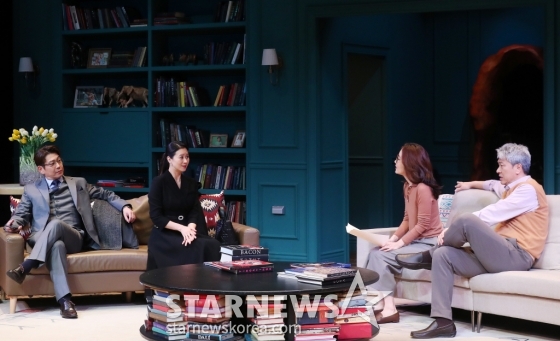 배우 민영기, 임강희, 정연, 김상경이 10일 오후 서울 서초구 예술의 전당 자유소극장에서 진행된 연극 '대학살의 신' 프레스콜에서 열연을 하고 있다.